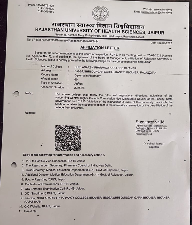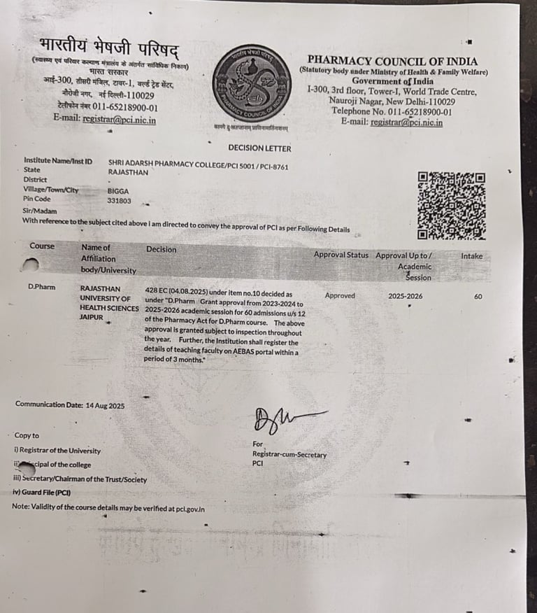Shri Adarsh Pharmacy College is dedicated to nurturing skilled pharmacists through quality education and hands-on training.